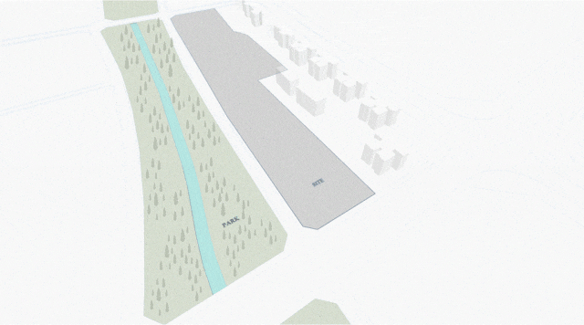 项目西侧紧邻规划城市公园,景观资源充足。示范区沿基地的东侧布置,在布局策略上利用并放大了东西向景观主轴的东侧人行入口节点,一体化打造公园景观归家的城市艺术生活馆。