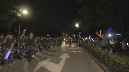 距离不等的新生夜间行军拉练
