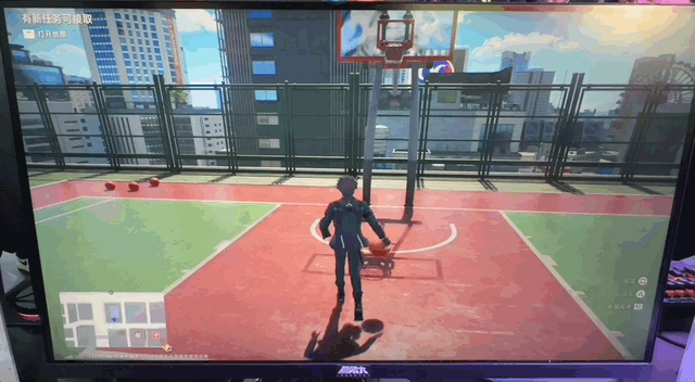 这真不是夸张。在试玩中,我一开始仅仅是想体验角色飞檐走壁的玩法,却在一栋楼的楼顶看到了一座篮球场。出于好奇心,我翻了进去,里面刚好有一颗篮球。