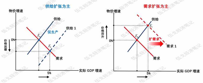 实现同样的经济增速目标,其实存在多种路径,也对应着多种量价均衡。简言之,若需求扩张快于供给,则对物价有提振;反之,则存在压制的可能。