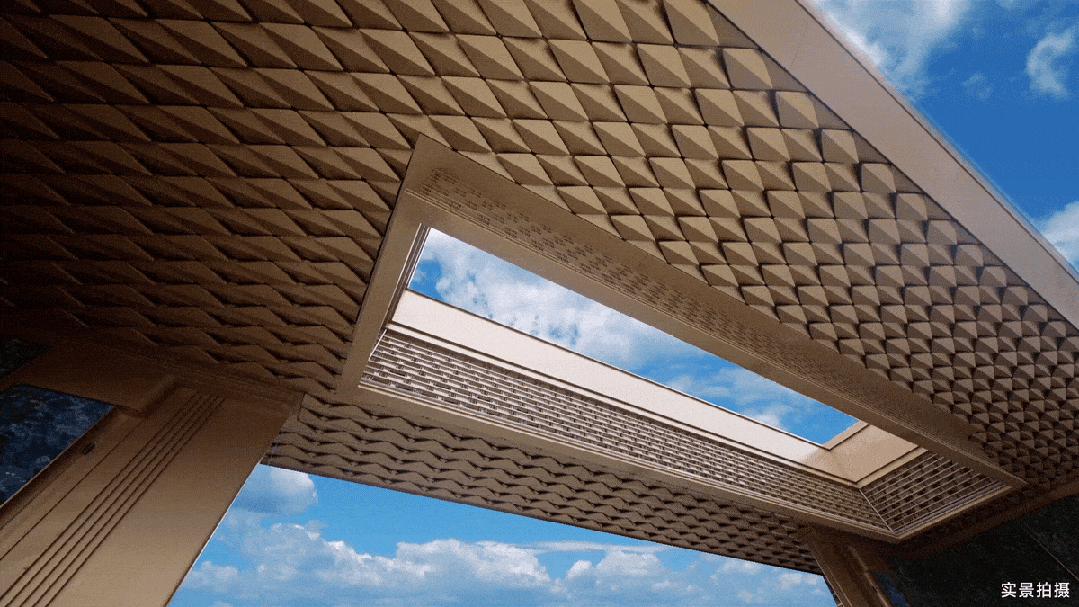 踏入社区,首先邂逅的是满含东方意蕴的山水门庭。金桂定制天花以“桂” 为魂、以 “水” 为形,花瓣线条经反复打磨,水纹弧度精准把控,光线流转间,仿佛有桂香随光影漫溢;门庭垂落的万字福纹提取传统符号核心线条,以极简几何重构,镂空工艺让光影随脚步流动,每一次踏入都是与千年吉意的温柔相逢。