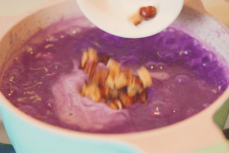 今天这碗粥主要食材就是紫薯,搭配富含膳食纤维的燕麦片,软糯香甜。