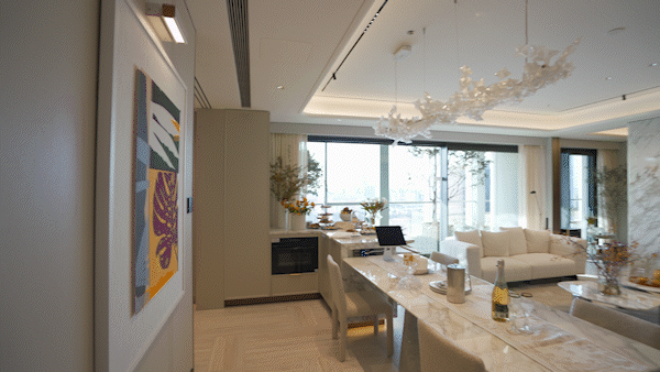 超过60平米的开放式空间(客厅、餐厅、X空间、阳台一体化),功能灵活,可满足大型派对或家庭休闲,尺度感直接媲美原来350㎡的滨江户型。