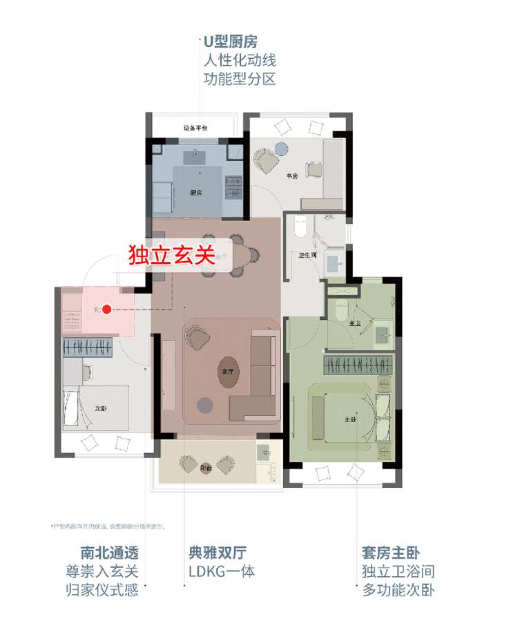 至于独立玄关、全卧飘窗、U型厨房等,皆为标配。
