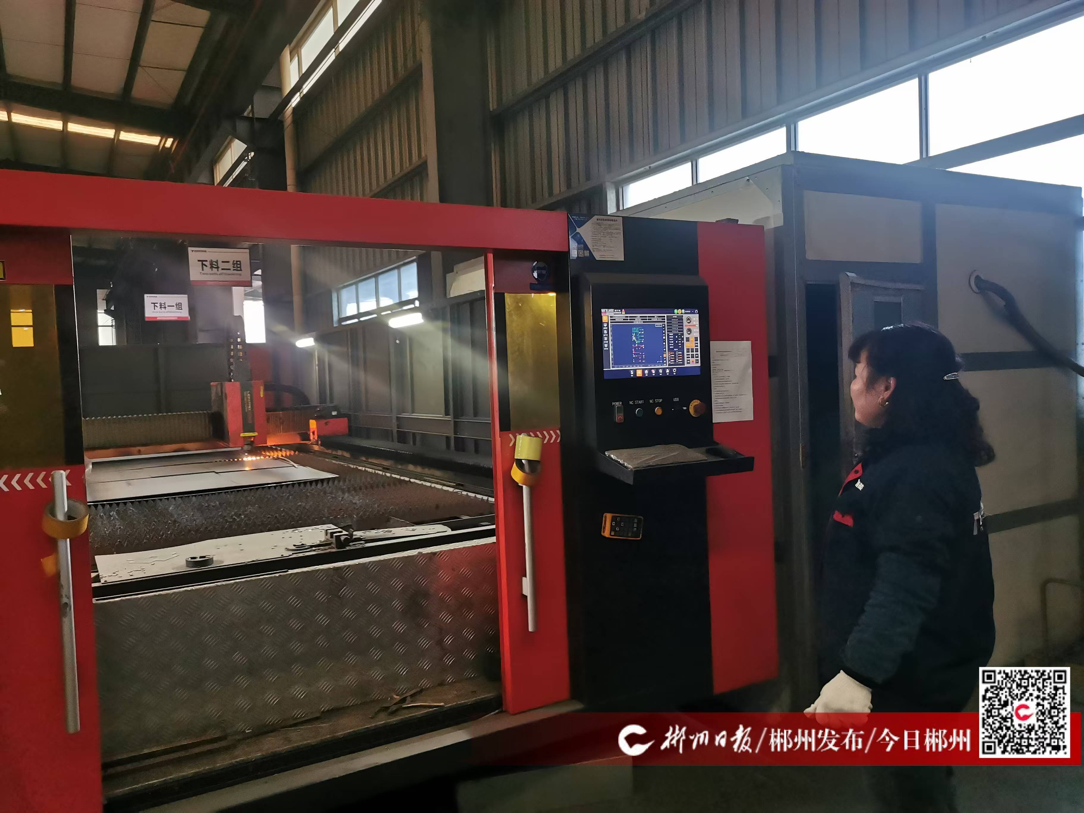 开工第一天,50岁的工人李银菊干劲十足。在一台大型激光机前,她轻点屏幕,激光机“滋滋”作响,闪闪激光之下,一块块耐压钢板顿时在自动操控下被切割成标准零配件。