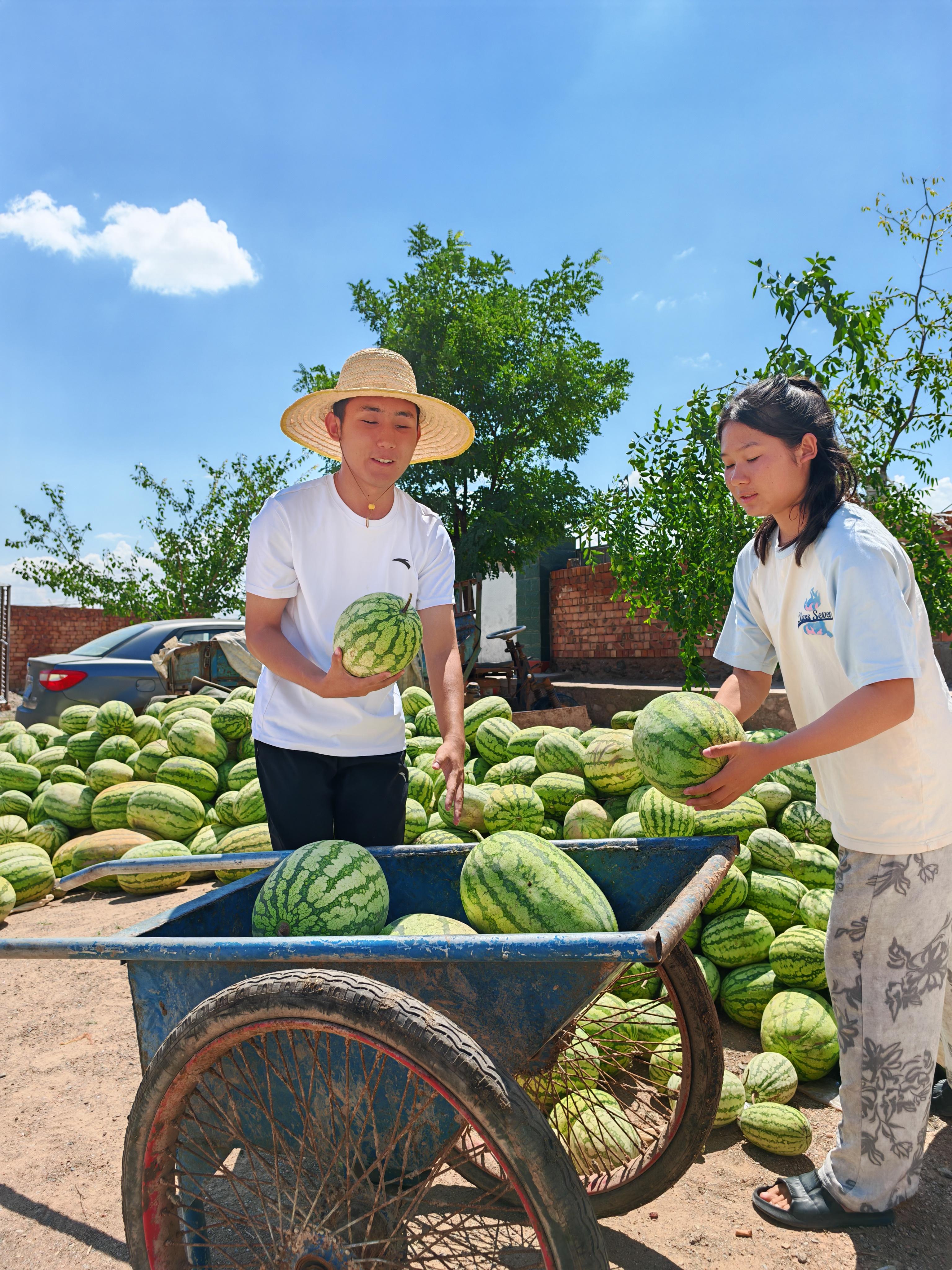 马国庆和妹妹帮助家里收获硒砂瓜。