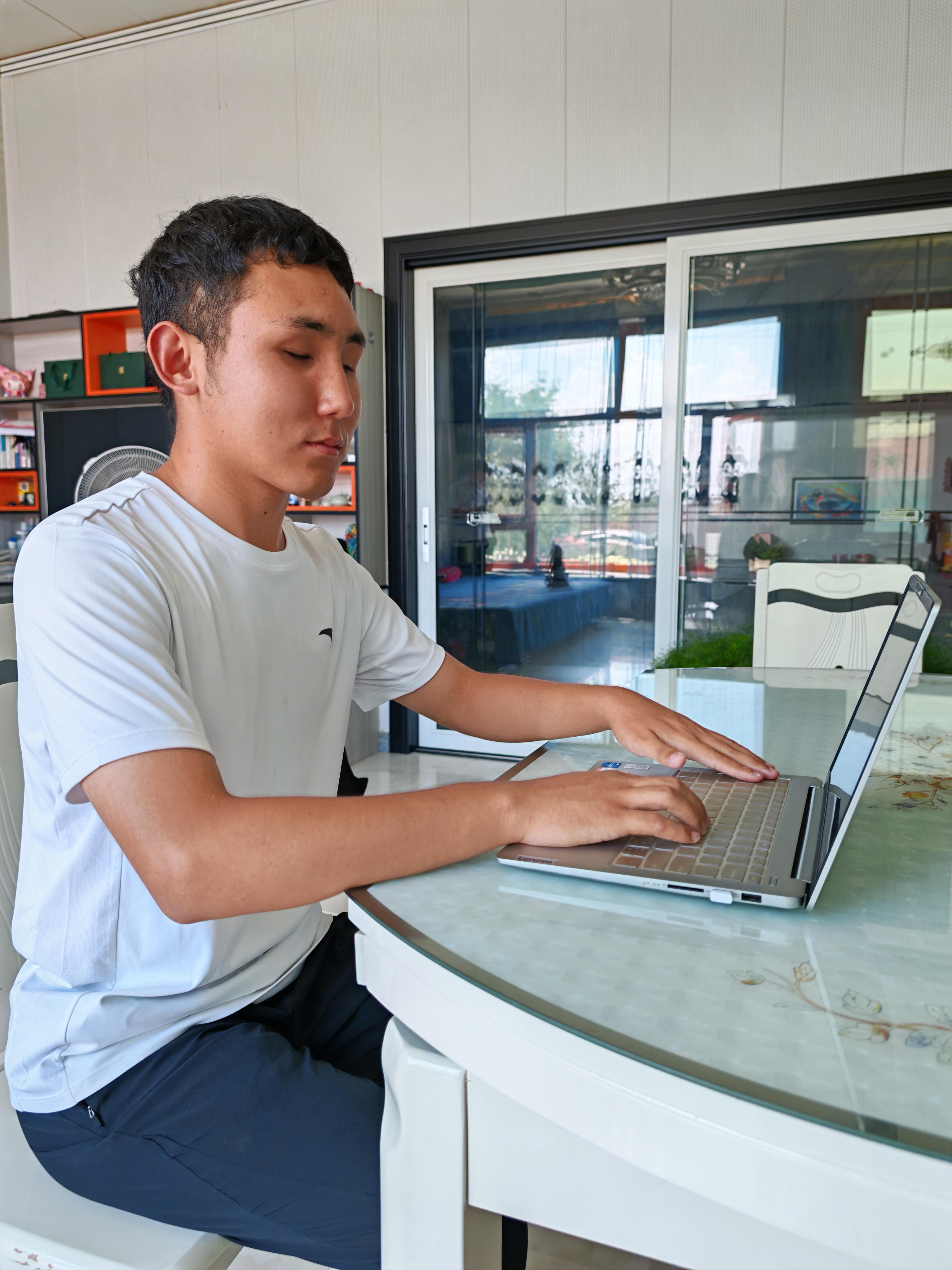 说话的是中卫市中宁县徐套乡大滩川村20岁的青年马国庆,在2025年高考中,他被重庆城市科技学院播音专业录取,成为宁夏首位播音专业的盲人大学生。