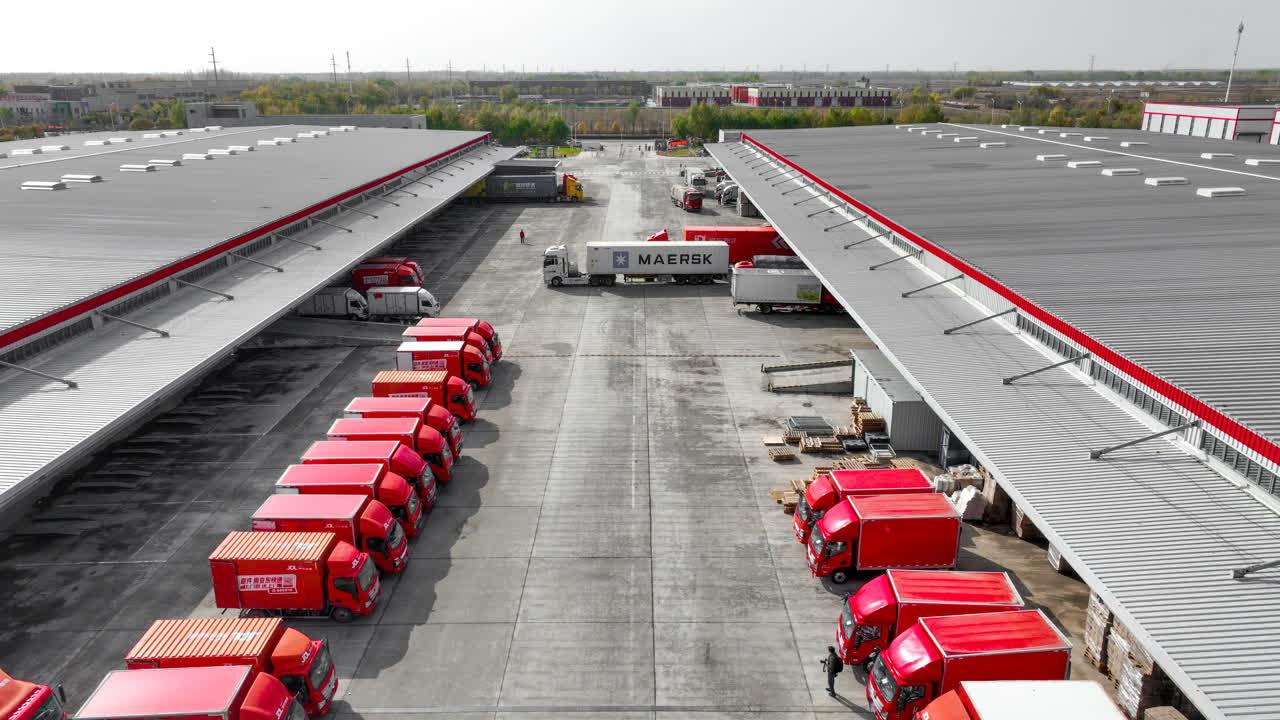 在京东物流银川一分拣中心,一辆辆物流卡车有序进出,装载着“双十一”期间的包裹,准备发往宁夏各地。
