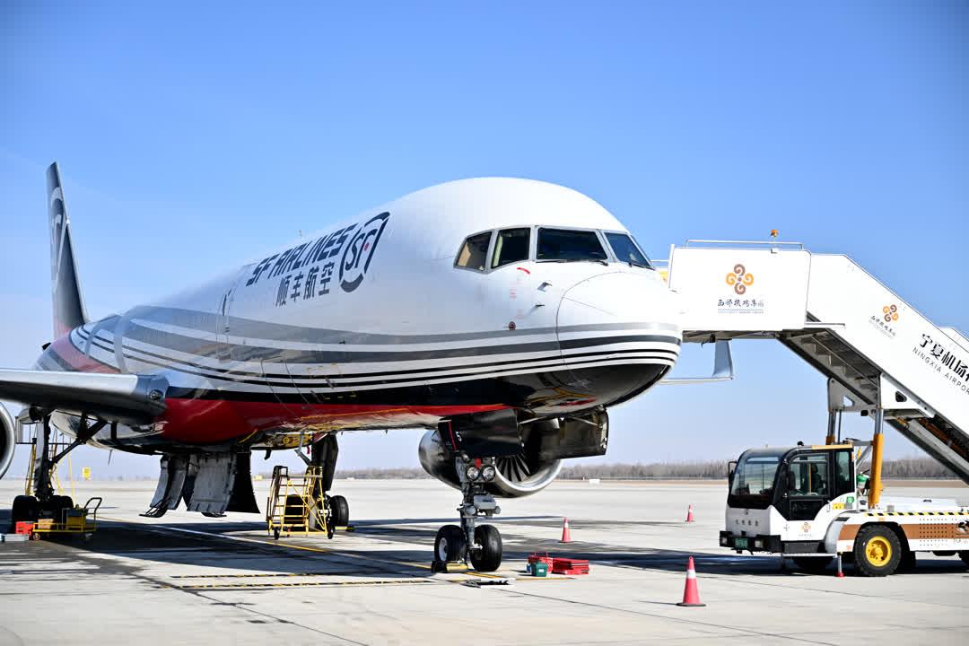 顺丰航空货机停靠河东机场,借助航空物流运力,为宁夏特色产品运输、电商物流等提供高效支撑。