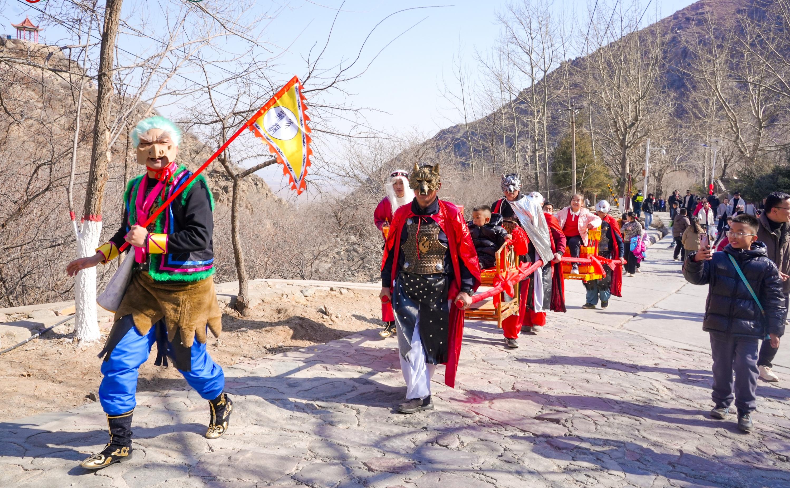 滚钟口景区相关负责人宿祎告诉记者,此次活动以《西游记》文化IP为核心叙事,将传统年俗与经典文学形象有机融合。“我们突破了传统的游览模式,以‘妖约滚钟口’为主线,把整个景区变成了一个巨大的叙事剧场。”